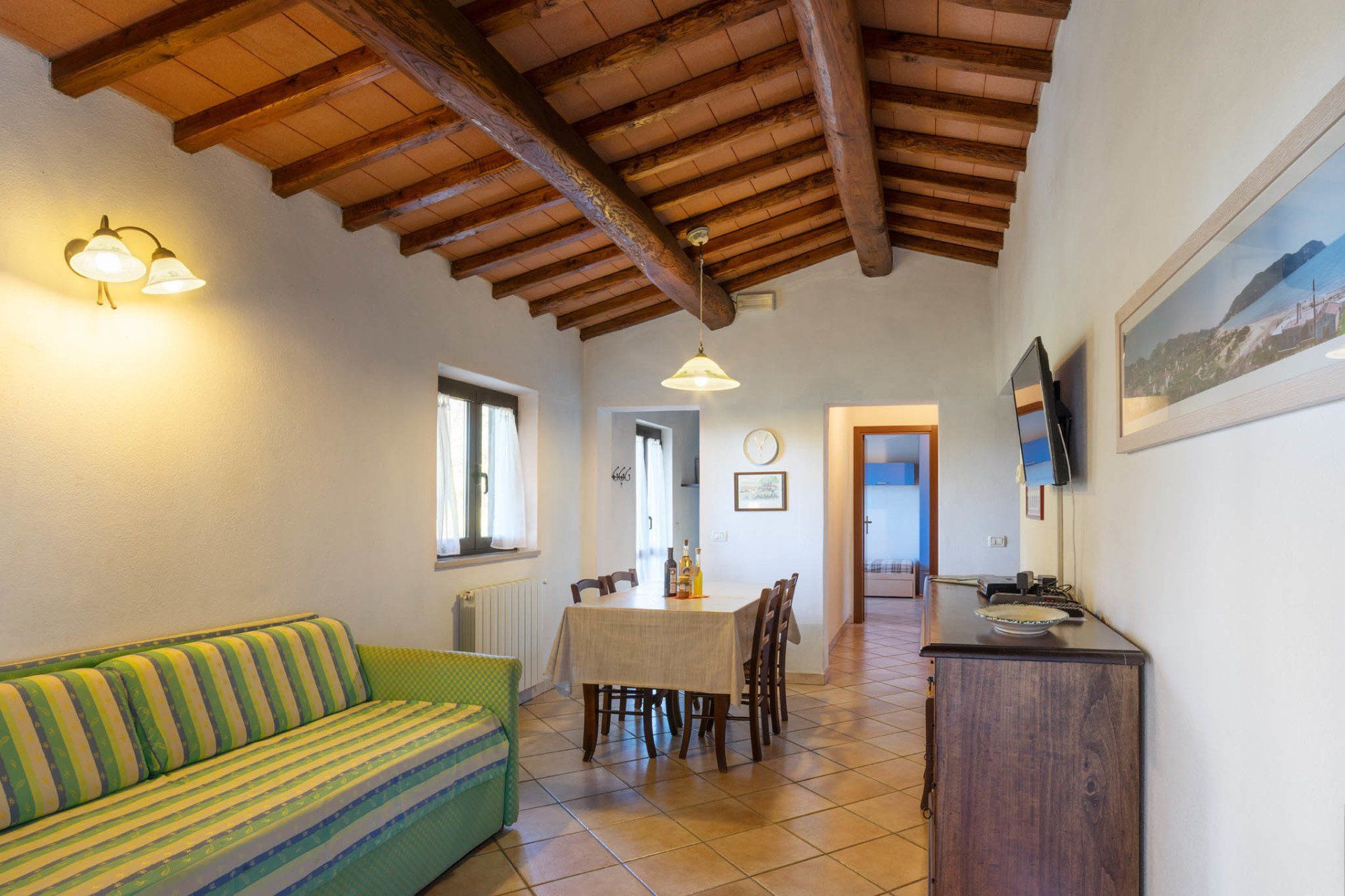 Appartamento di circa 37 mq composto da camera matrimoniale, camera con un letto singolo e un letto a castello, cucina abitabile (con lavastoviglie), bagno con doccia.